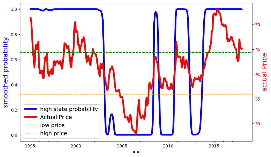 ax2.axhline(y=mu[1], color='orange', linestyle='--', label='low price')