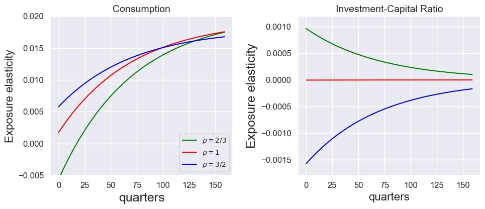 In a model comparison paper, [Hansen et al., 2024] use a continuous-time specification as we described here and discuss the continuous time methods for shock elasticities as barometers for the alternative models. The models include ones with two capital stocks differentially exposed to uncertainty and ones with two types of agents differentially exposed to financing constraints.